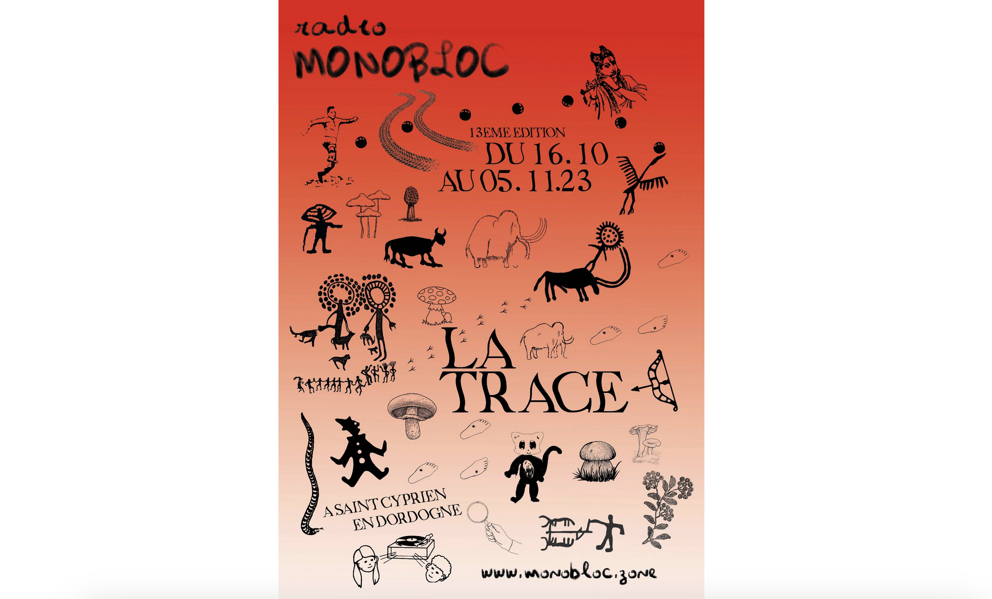 Pour sa 13ème édition, MONOBLOC s’est installé en Dordogne, dans le Périgord noir, un territoire considéré comme l’un des berceaux de l’humanité. Les traces des premiers humains y remontent à plus de 400 000 ans et a toujours été habité depuis, ce qui assure d’un certain nombre d’histoires à raconter…